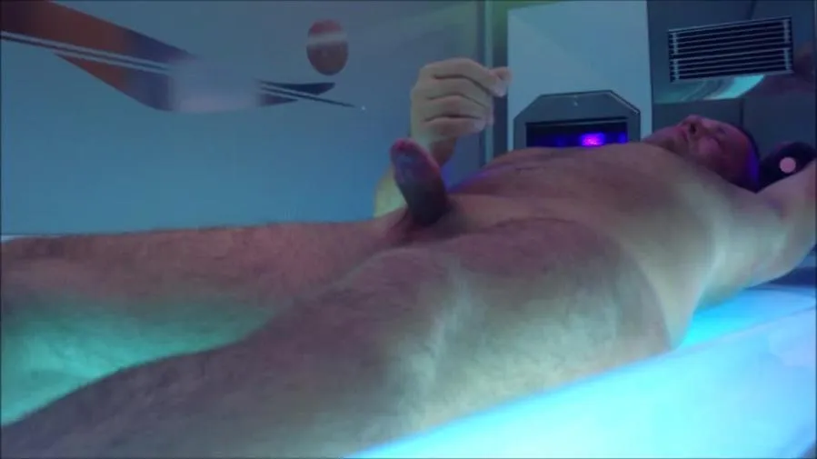 Spanner im Solarium filmt heiße Nahaufnahmen eines stark behaarten Fetischmodels